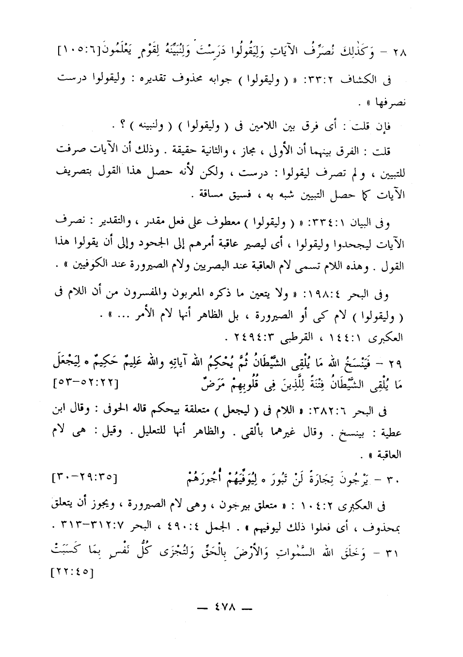 في البحر 6: 383: «اللام في (ليجعل) متعلقة بيحكم قاله الحوفي: وقال ابن عطية: بينسخ. وقال غيرهما بألقى. والظاهر أنها للتعليل. وقيل: هي لام العاقبة».