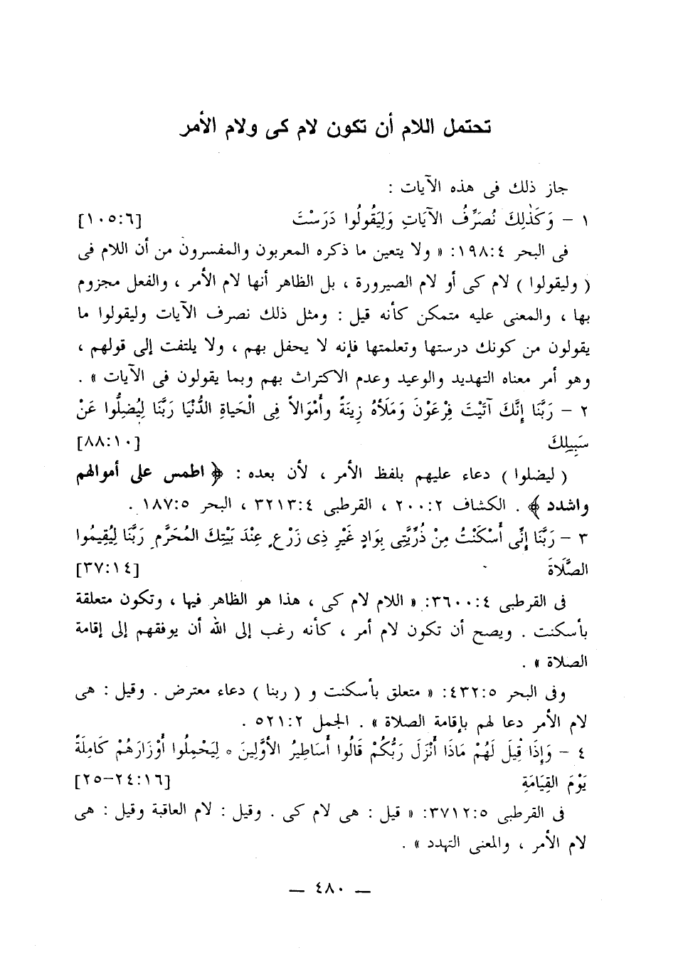 في القرطبي 4: 3600: «اللام لام كي، هذا هو الظاهر فيها، وتكون متعلقة بأسكنت. ويصح أن تكون لام الأمر، كأنه رغب إلى الله أن يوفقهم إلى إقامة الصلاة».