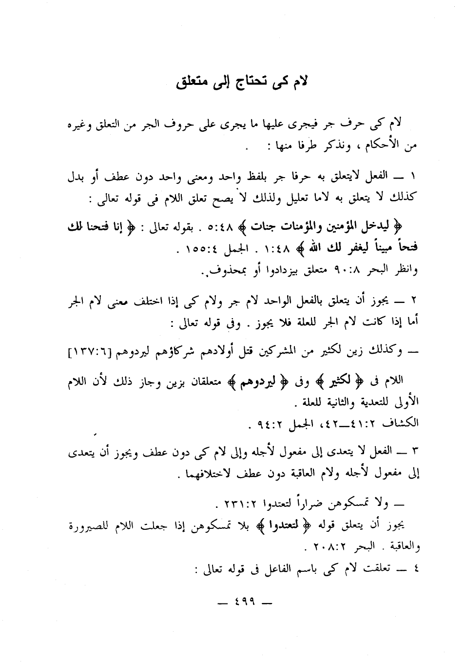 2 - يجوز أن يتعلق بالفعل الواحد لام جر ولام كي إذا اختلف معنى لام الجر أما إذا كانت لام الجر للعلة فلا يجوز. وفي قوله تعالى:
