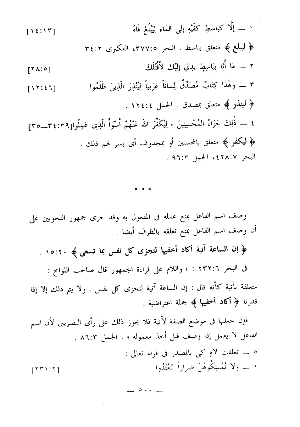 فإن جعلتها في موضع الصفة لآتية فلا يجوز ذلك على رأي البصريين لأن اسم الفاعل لا يعمل إذا وصف قبل أخذ معموله». الجمل 3: 86.