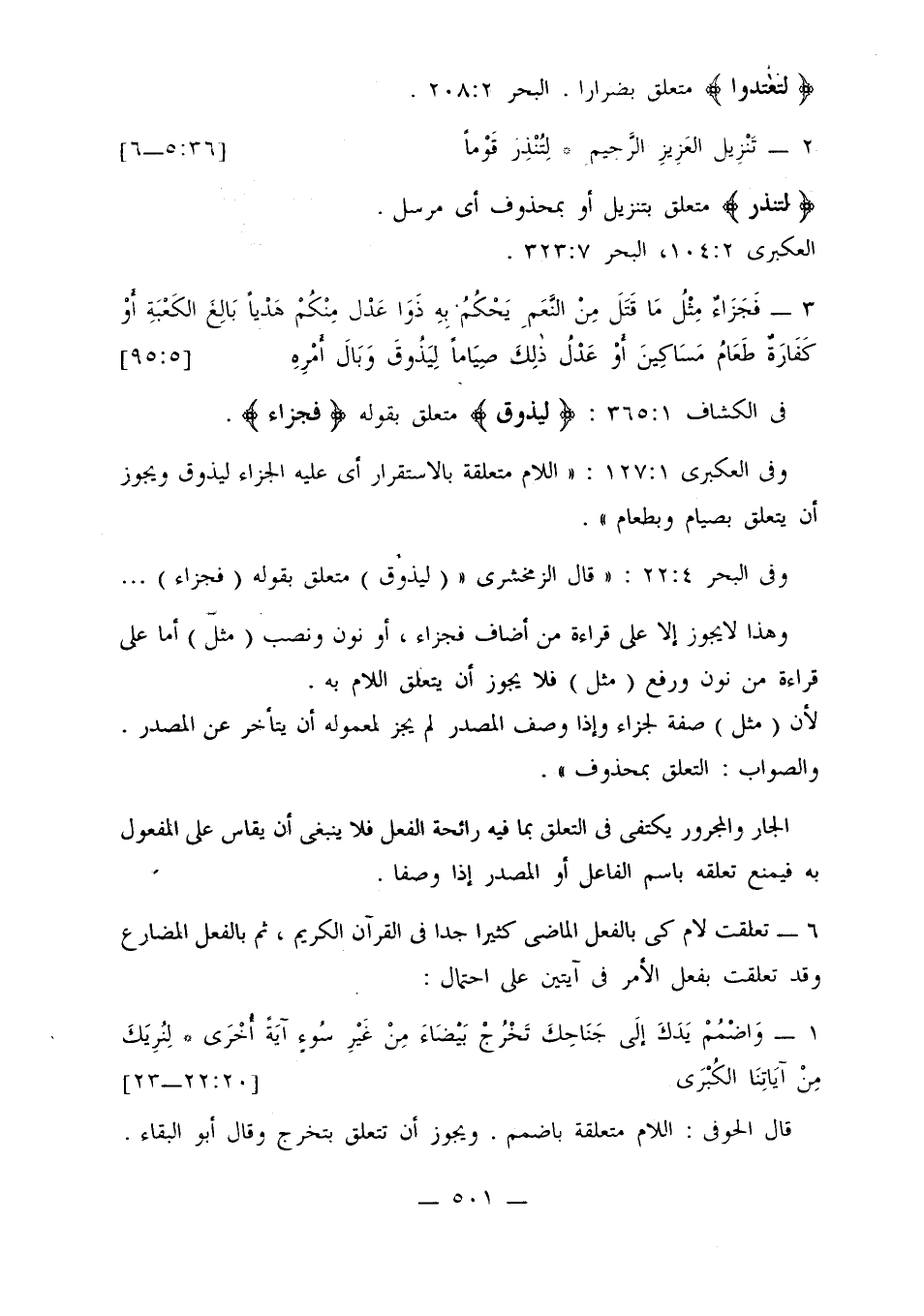 وفي العكبري 1: 127: «اللام متعلقة بالاستقلال أي عليه الجزاء ليذوق ويجوز أن يتعلق بصيام وبطعام».