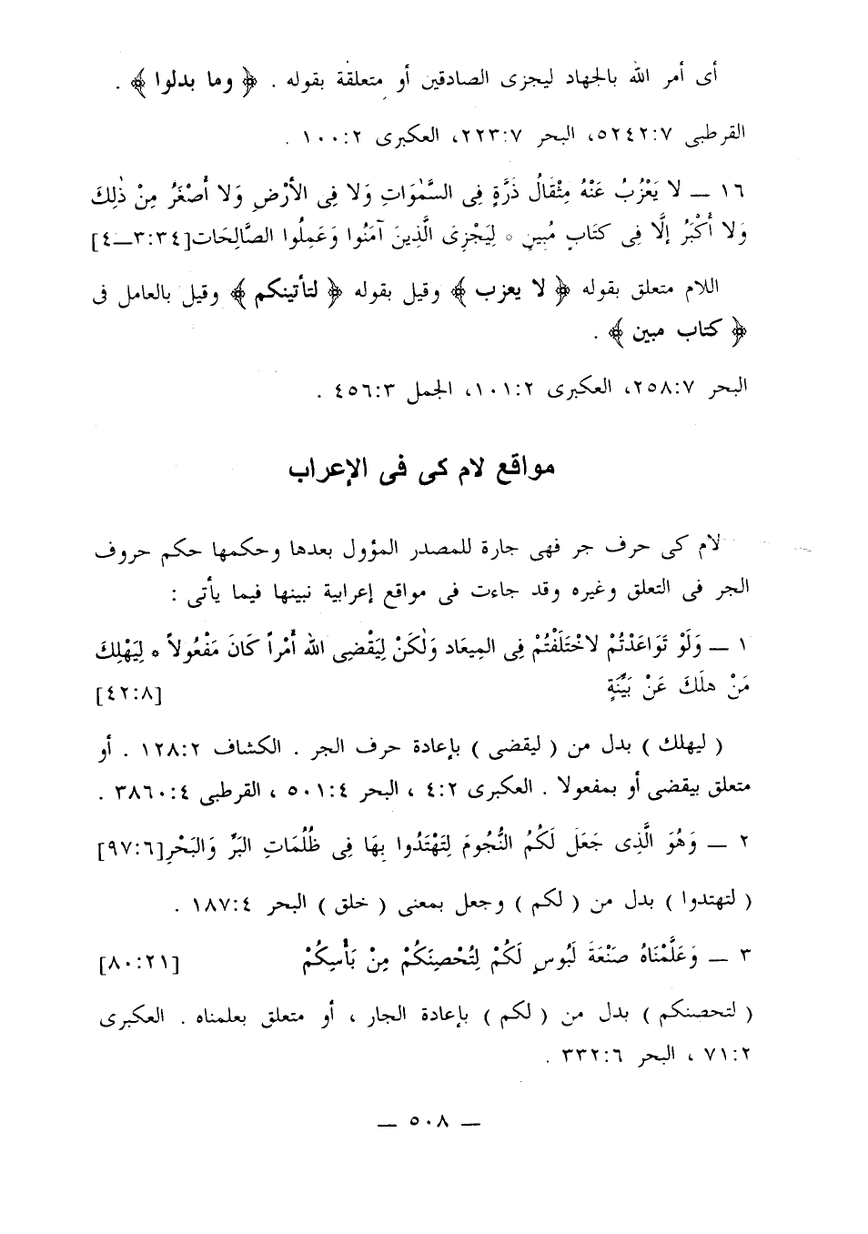 (ليهلك) بدل من (ليقضي) بإعادة حرف الجر. الكشاف 2: 128. أو متعلق بيقضي أو بمفعولا. العكبري 2: 4، البحر 4: 501، القرطبي 4: 3860.