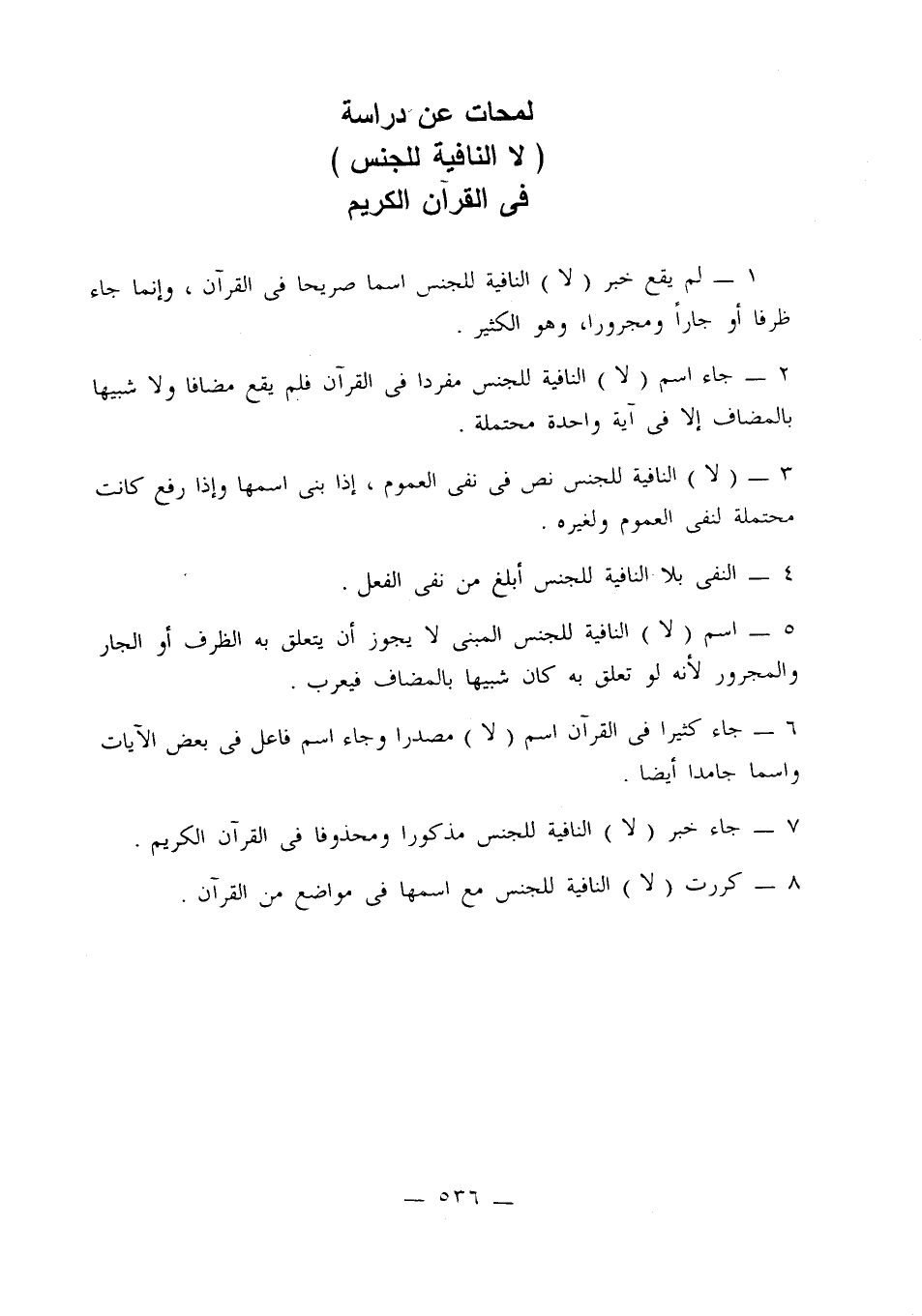 3 - (لا) النافية للجنس نص في نفي العموم، إذا بنى اسمها وإذا رفع كانت محتملة لنفي العموم ولغيره.