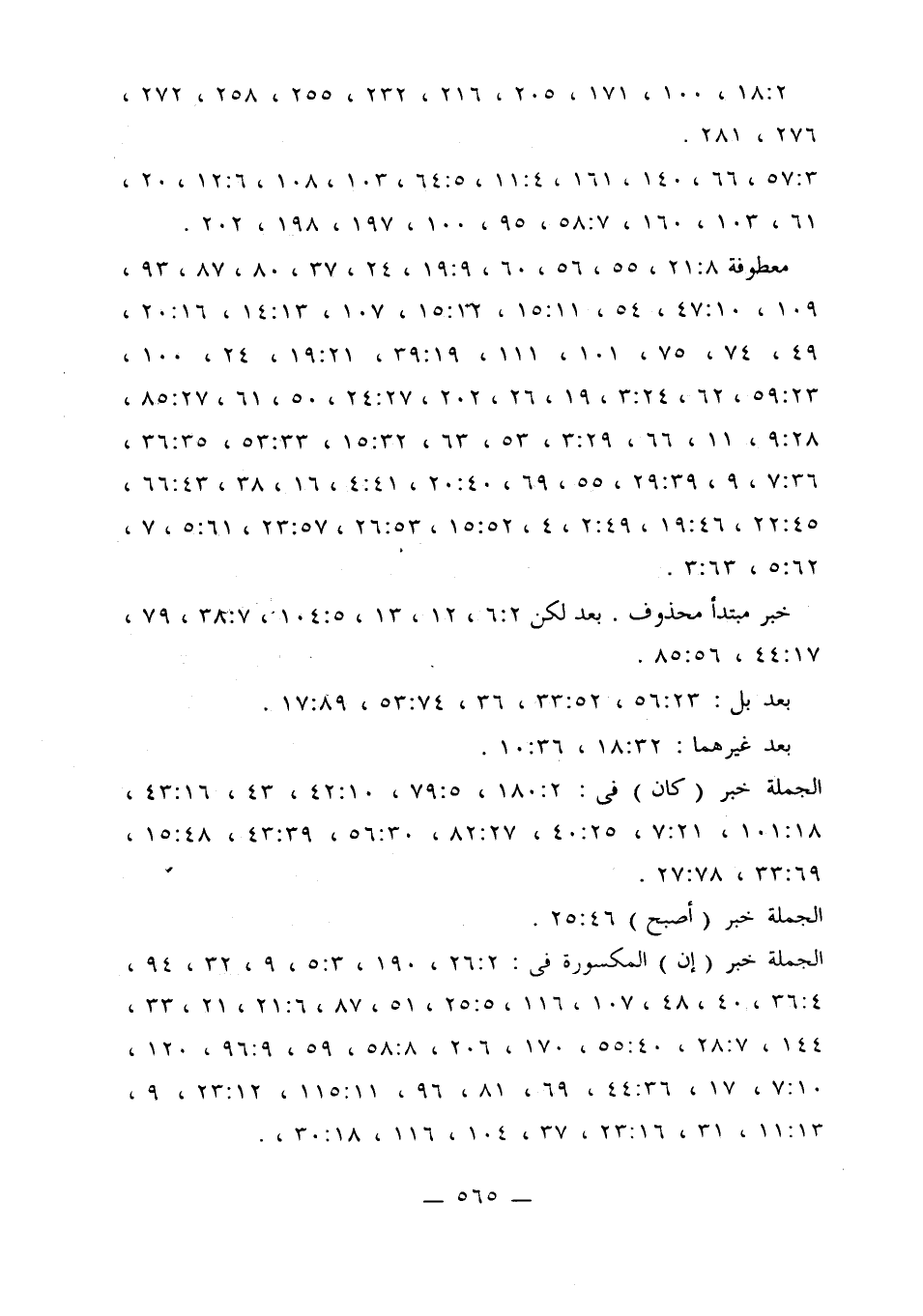 معطوفة 8: 21، 55، 56، 60، 9: 19، 24، 37، 80، 87، 93، 109، 10: 47، 54، 11: 15، 12: 15، 107، 13: 14، 16: 20، 49، 74، 75، 101، 111، 19: 39، 21: 19، 24، 100، 23: 59، 62، 24: 3، 19، 26، 202، 27: 24، 50، 61، 27: 85، 28: 9، 39: 29، 55، 69، 40: 20، 41: 4، 16، 38، 43: 66، 45: 22، 46: 19، 49: 2، 4، 52: 15، 53: 26، 57: 23، 61: 5، 7، 62: 5، 63: 3.