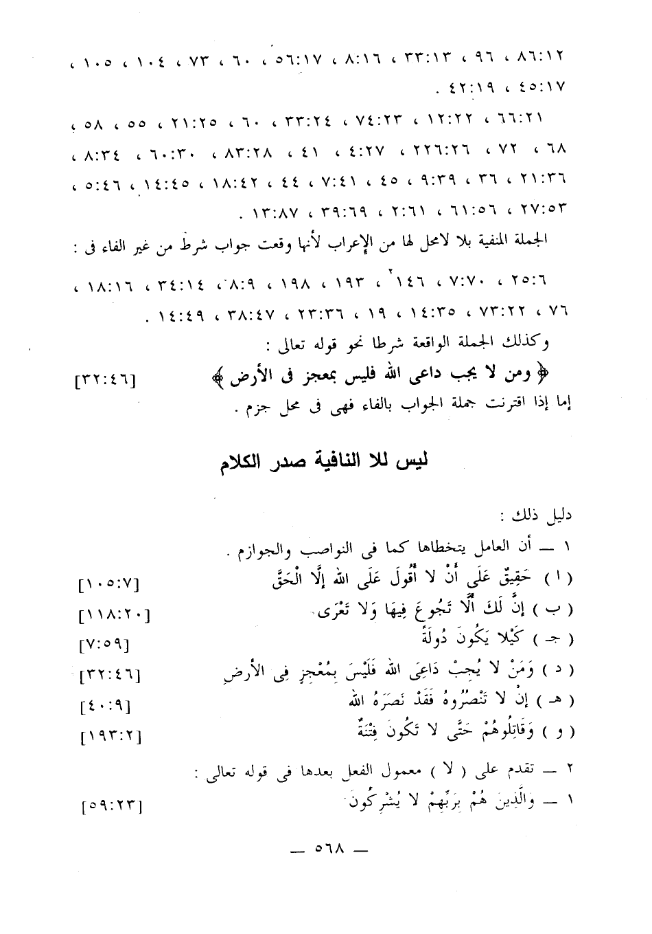 2 - تقدم على (لا) معمول الفعل بعدها في قوله تعالى: