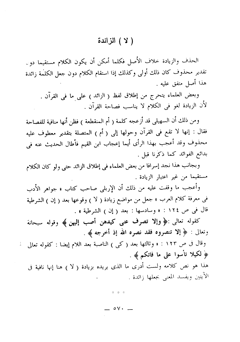 وبعض العلماء يتحرج من إطلاق لفظ (الزائد) على ما في القرآن. لأن الزيادة لغو في الكلام لا يناسب فصاحة القرآن.