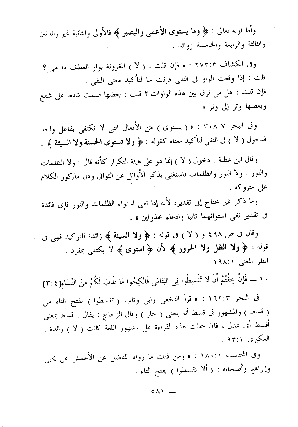 وفي الكشاف 3: 273: «فإن قلت: (لا) المقرونة بواو العطف ما هي؟