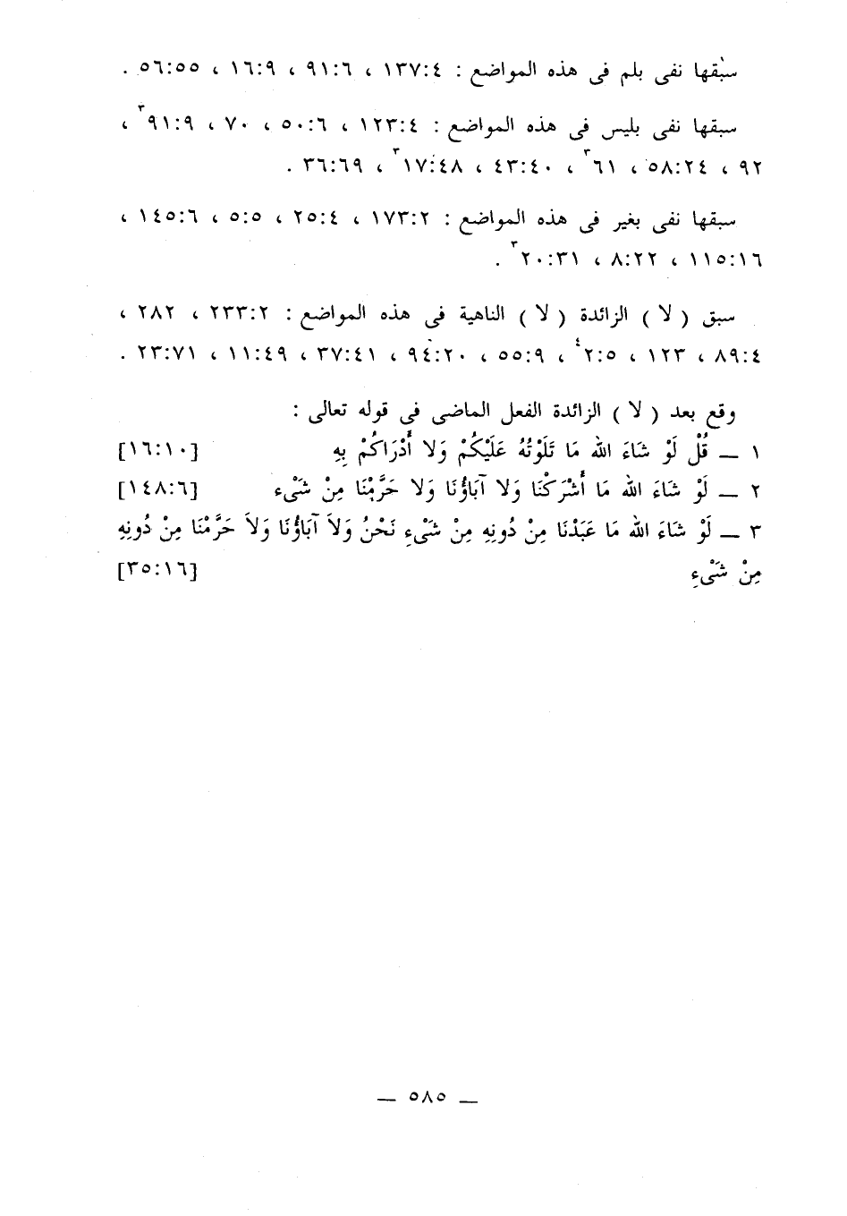 سبق (لا) الزائدة (لا) الناهية في هذه المواضع: 2: 233، 282، 4: 89، 123، 5: 2، 9: 55، 20: 94، 41: 37، 49: 11 ن 71: 23.