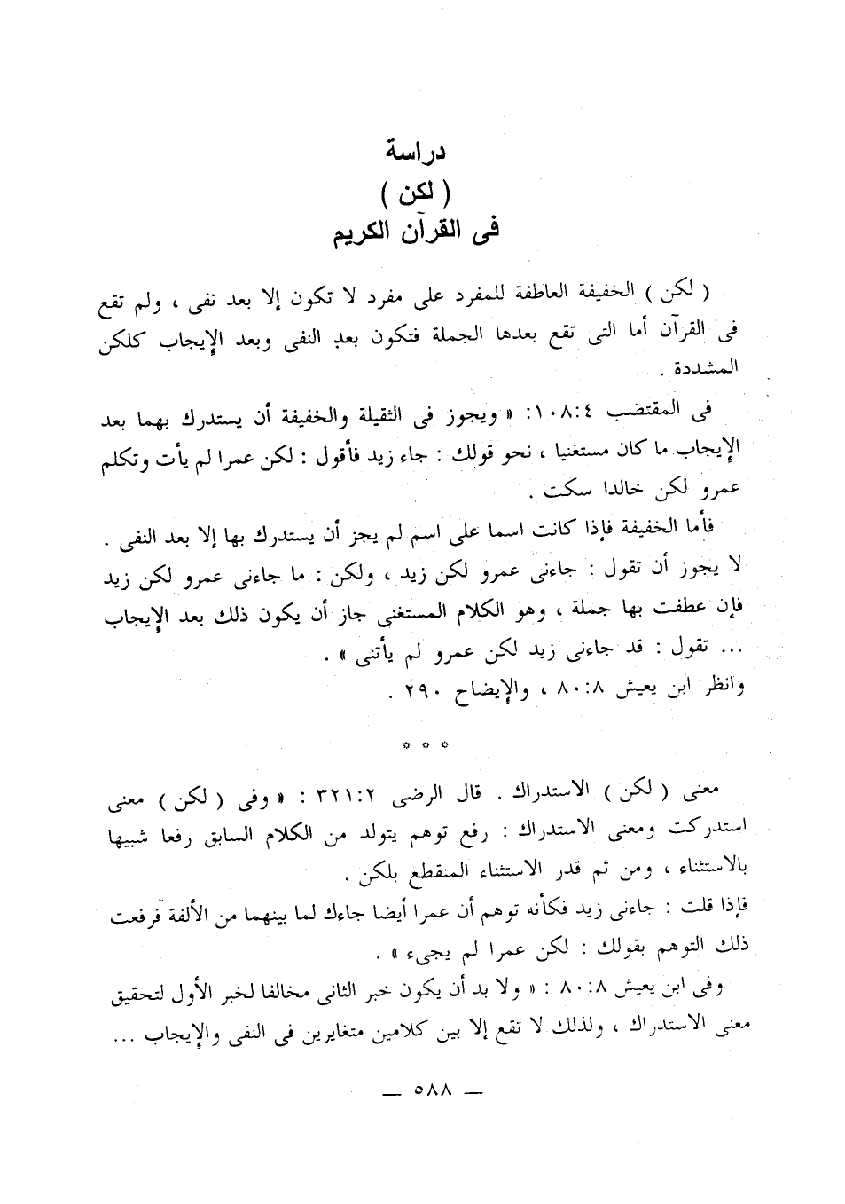 وفي ابن يعيش 8: 80: «ولا بد أن يكون خبر الثاني مخالفًا لخبر الأول لتحقيق معنى الاستدراك، ولذلك لا تقع إلا بين كلامين متغايرين في النفي والإيجاب ...