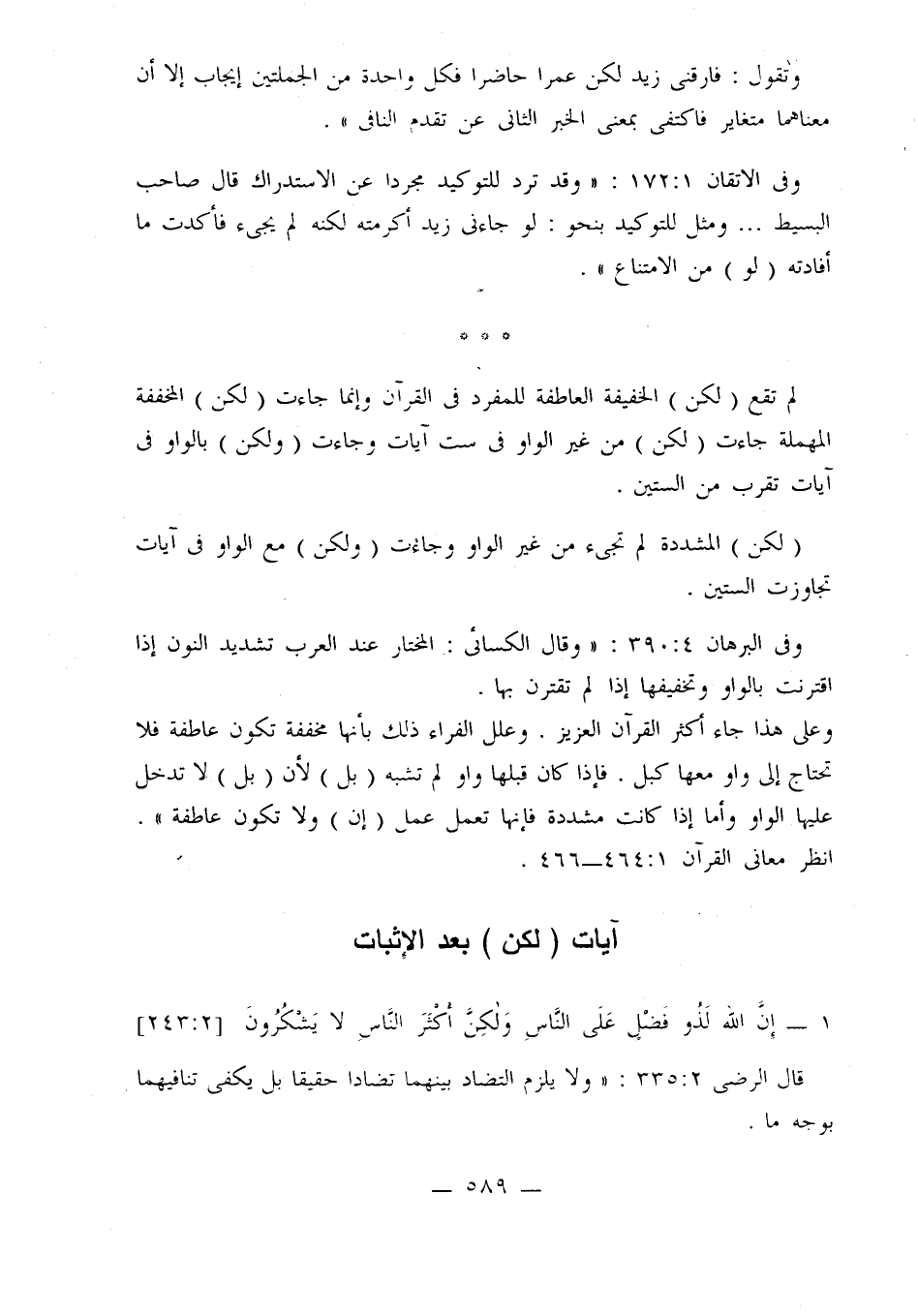(لكن) المشددة لم تجيء من غير الواو وجاءت (ولكن) مع الواو في آيات تجاوزت الستين.