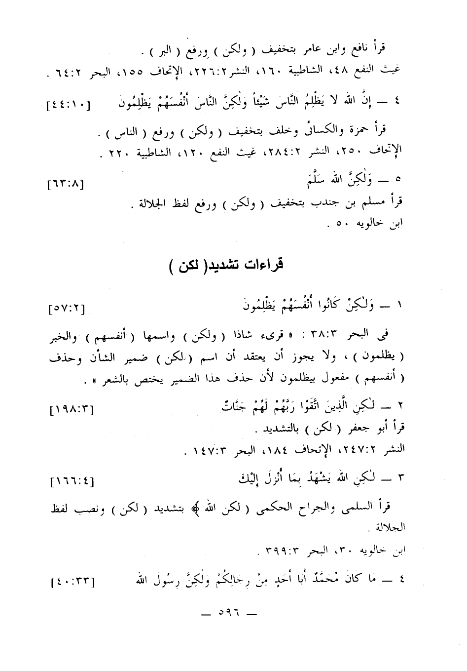 في البحر 3: 38: «قرئ شاذا (ولكن) واسمها (أنفسهم) والخبر (يظلمون)، ولا يجوز أن يعتقد أن اسم (لكن) ضمير الشأن وحذف (أنفسهم) مفعول بيظلمون لأن حذف هذا الضمير يختص بالشعر».