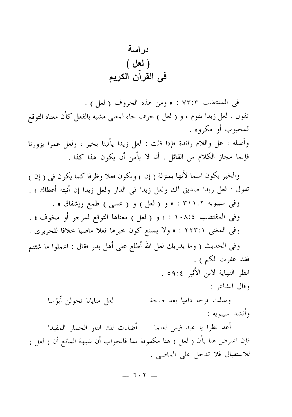 وفي المقتضب 4: 108: «و (لعل) معناها التوقع لمرجو أو مخوف».