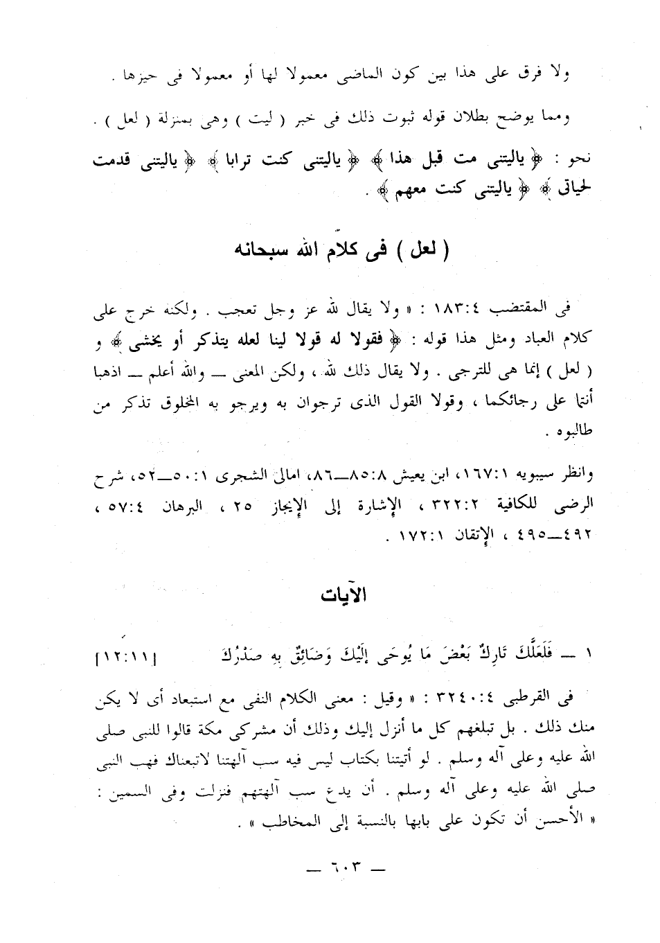 ومما يوضح بطلان قوله ثبوت ذلك في خبر (ليت) وهي بمنزلة (لعل).