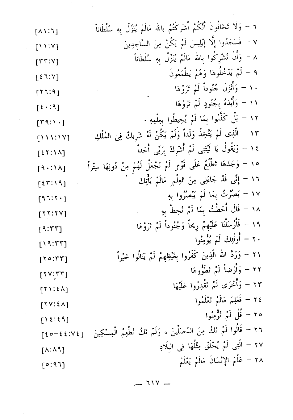 8 - وأن تشركوا بالله ما لم ينزل به سلطانا [7: 33].