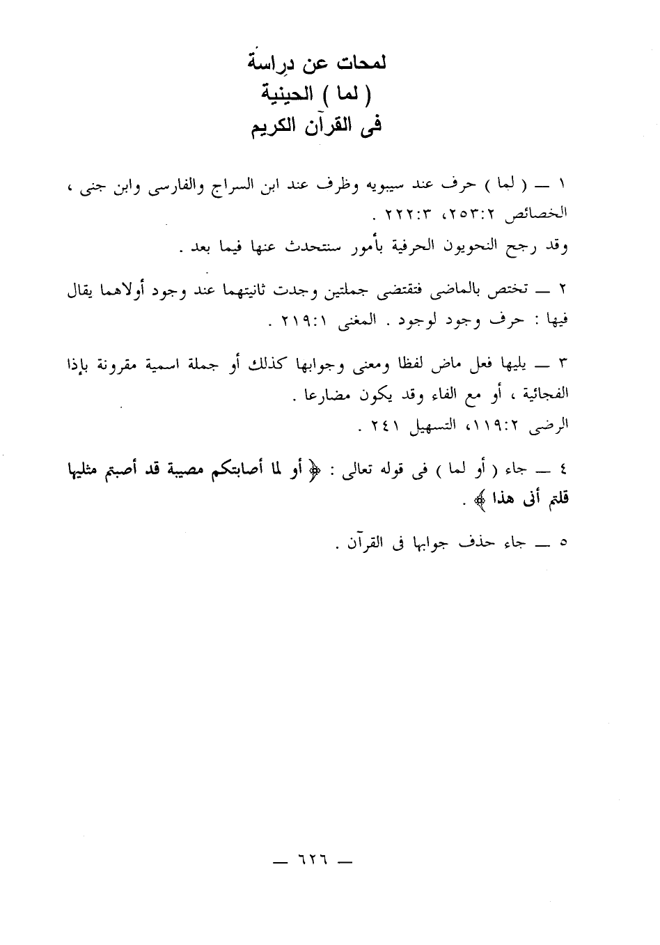1 - (لما) حرف عند سيبويه وظرف عند ابن السرج والفارسي وابن جني، الخصائص 2: 253، 3: 222.
