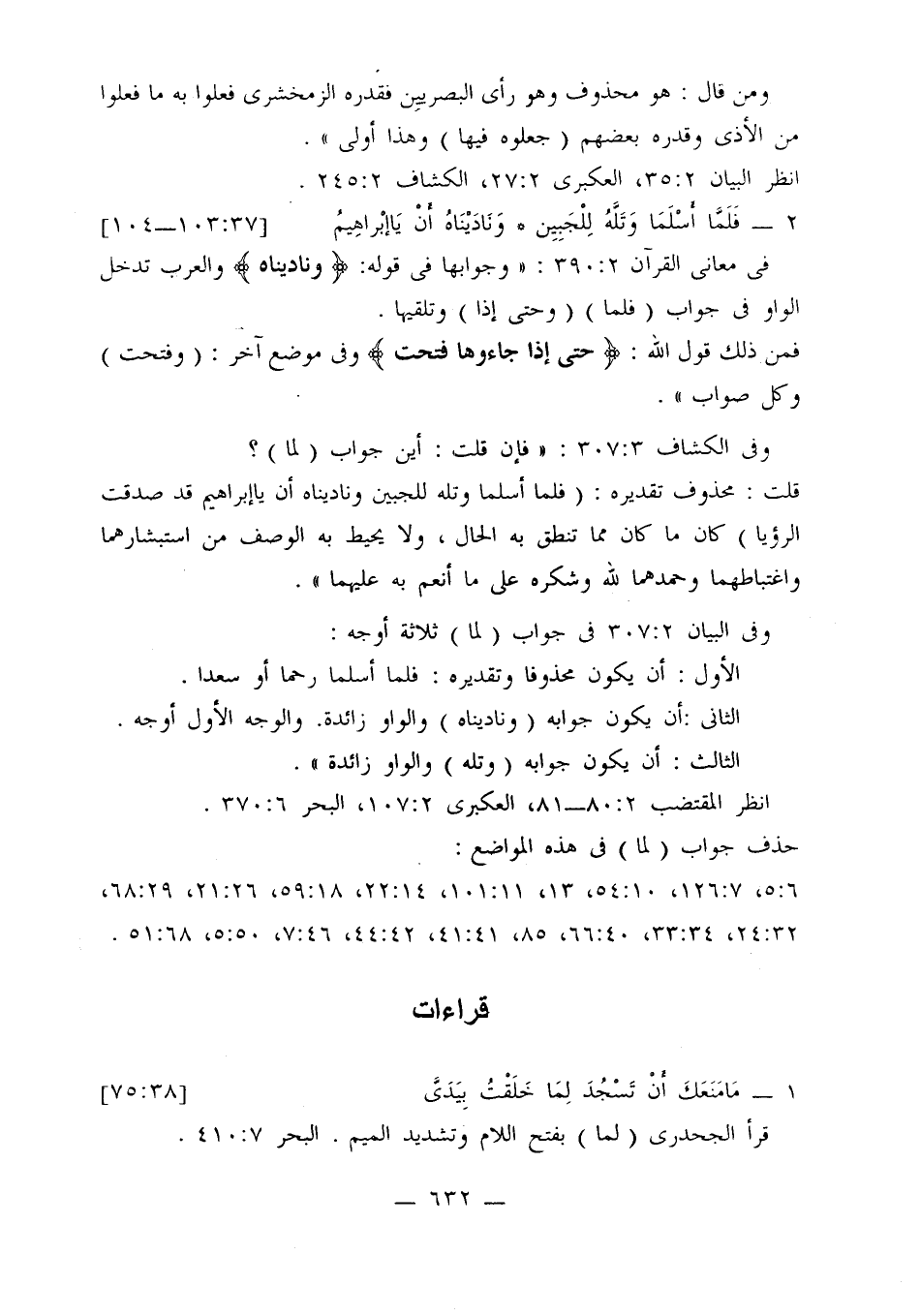 انظر المقتضب 2: 80 - 81، العكبري 2: 107، البحر 6: 370.
