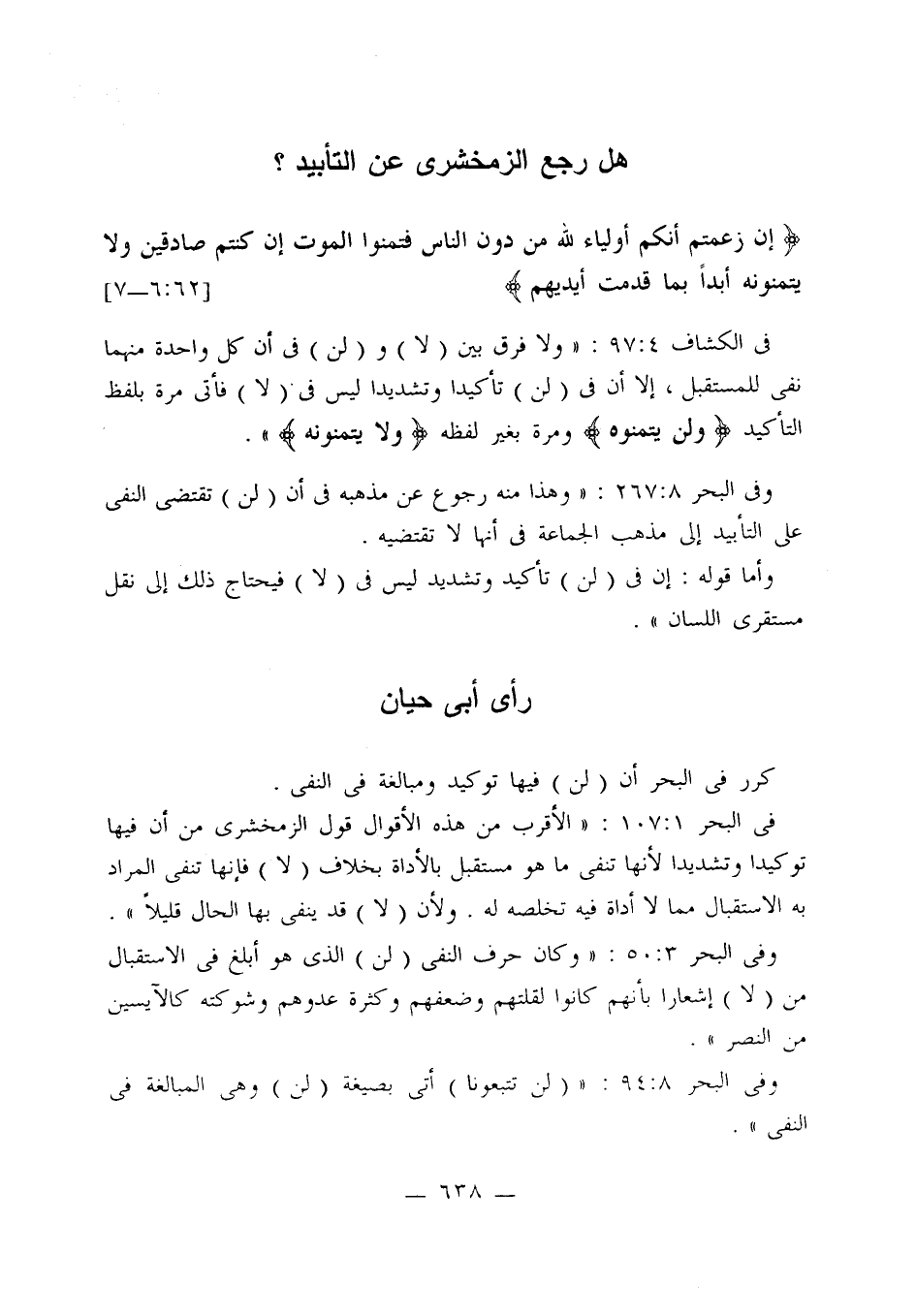 وفي البحر 8: 267: «وهذا منه رجوع عن مذهبه في أن (لن) تقتضي النفي على التأبيد إلى مذهب الجماعة في أنها لا تقتضيه.