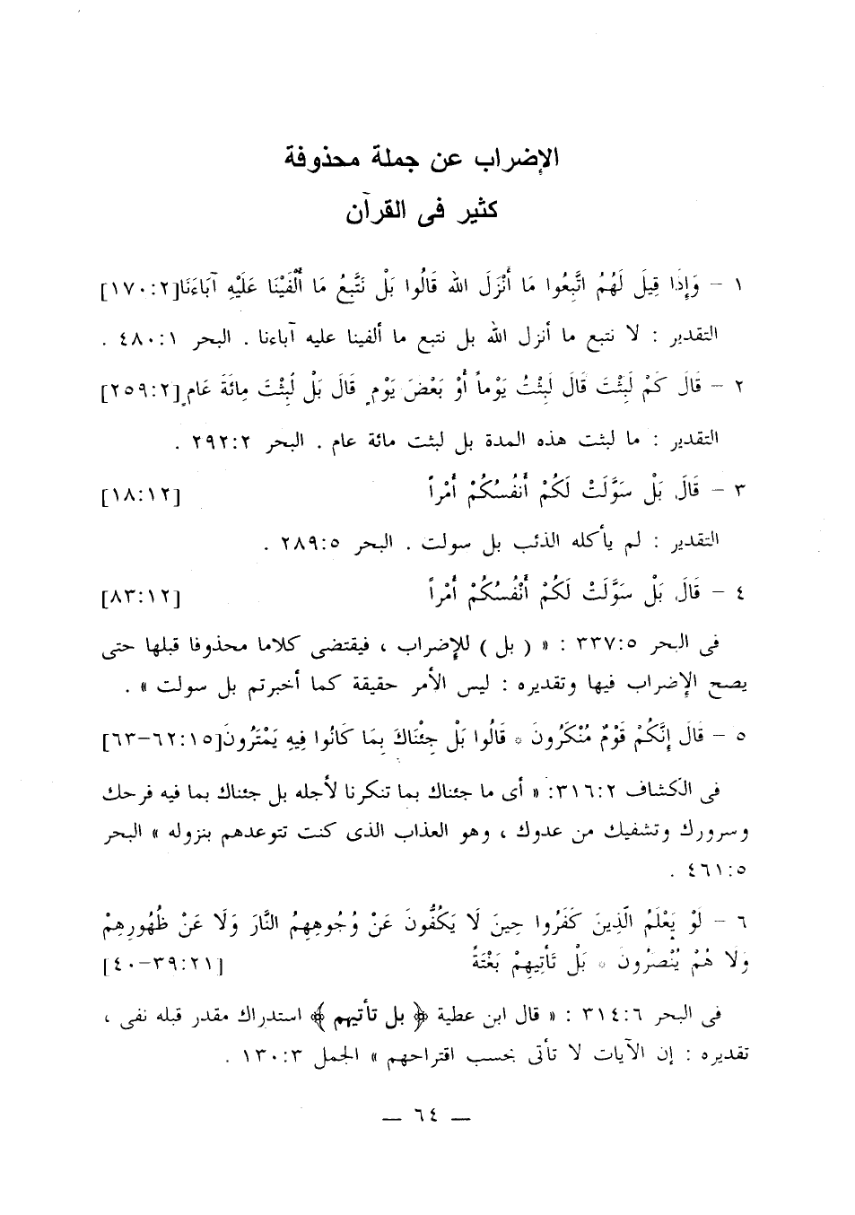 في البحر 6: 314: «قال ابن عطية {بل تأتيهم} استدراك مقدر قبله نفي، تقديره: إن الآيات لا تأتي بحسب اقتراحهم» الجمل 3: 130.