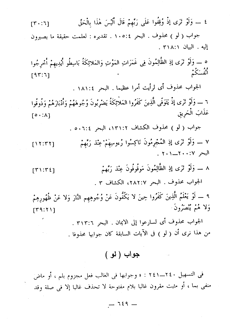 من هذا نرى أن (لو) في الآيات السابقة كان جوابها محذوفًا.