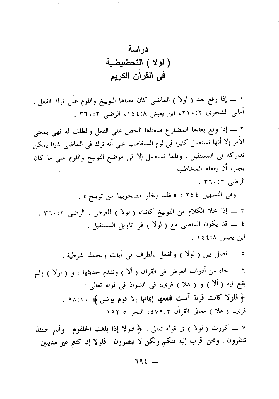 3 - إذا خلا الكلام من التوبيخ كانت (لولا) للعرض. الرضى 2: 360.