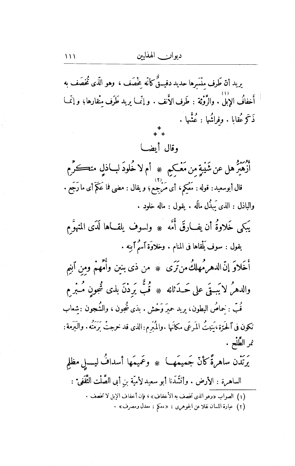 قال أبو سعيد: قوله: مَعْكِم، أي مَرجِع (¬2)؛ ويقال: مضى فما عَكَمَ أي ما رَجَع. والباذل: الذي يَيذُل مالَه. يقول: ماله خلود.