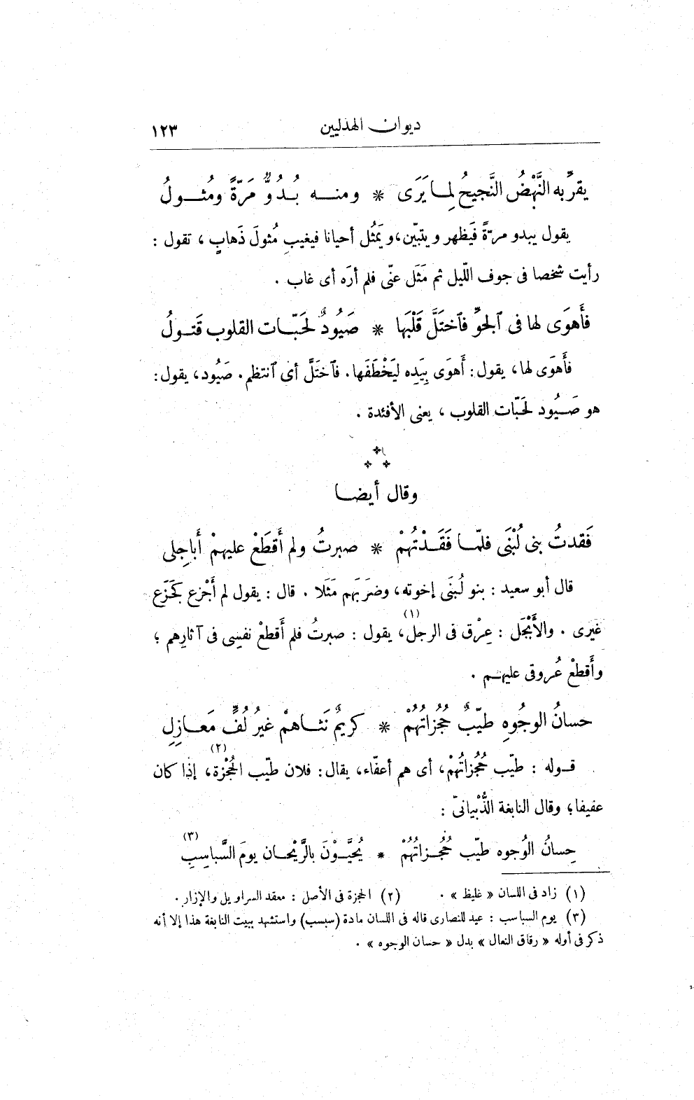 قال أبو سعيد: بنو لُبنَى إخوته، وضرَبَهم مَثَلا. قال: يقول لم أَجْزع كجَزَع غيرى. والأَبْجَل: عِرْق فى الرجل (¬1)، يقول: صبرتُ فلم أَقطعْ نفسِى فى آثارِهم؛ وأَقطعْ عُروقى عليهم.