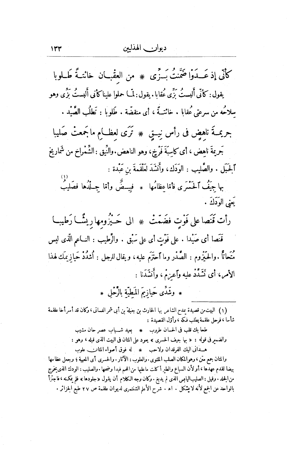 والمتان جمع متن، وهو المكان الصلب الملتوى. والعلوب: الآثار. والحسرى أي المعيبة، وجعل عظامها بيضا لقدم عهدها، أو لأن السباع والطير أَكلت ما عليها من اللحم فبدا وضحها. والصليب: الودك الذى يخرج من الجلد. وقيل: الصليب اليابس الذى لم يدبغ. وكان وجه الكلام أن يقول "جلودها" فلم يمكنه، فاجترأ الواحد عن الجمع لأنه لا يشكل. اهـ. شرح الأعلم الشنتمرى لديوان علقمة ص 27 طبع الجزائر.