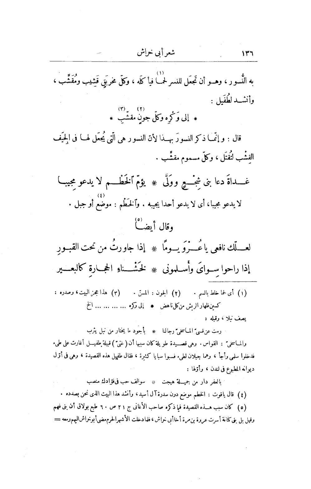 (¬5) كان سبب هذه القصيدة فيما ذكره صاحب الأغانى ج 21 ص 60 طبع بولاق أن بنى فهم وقيل بل بنى كنانة أسرت عروة بن مرة أخا أبى خراش، فلما دخلت الأشهر الحرم مضى أبو خراش إليهم ومعه=