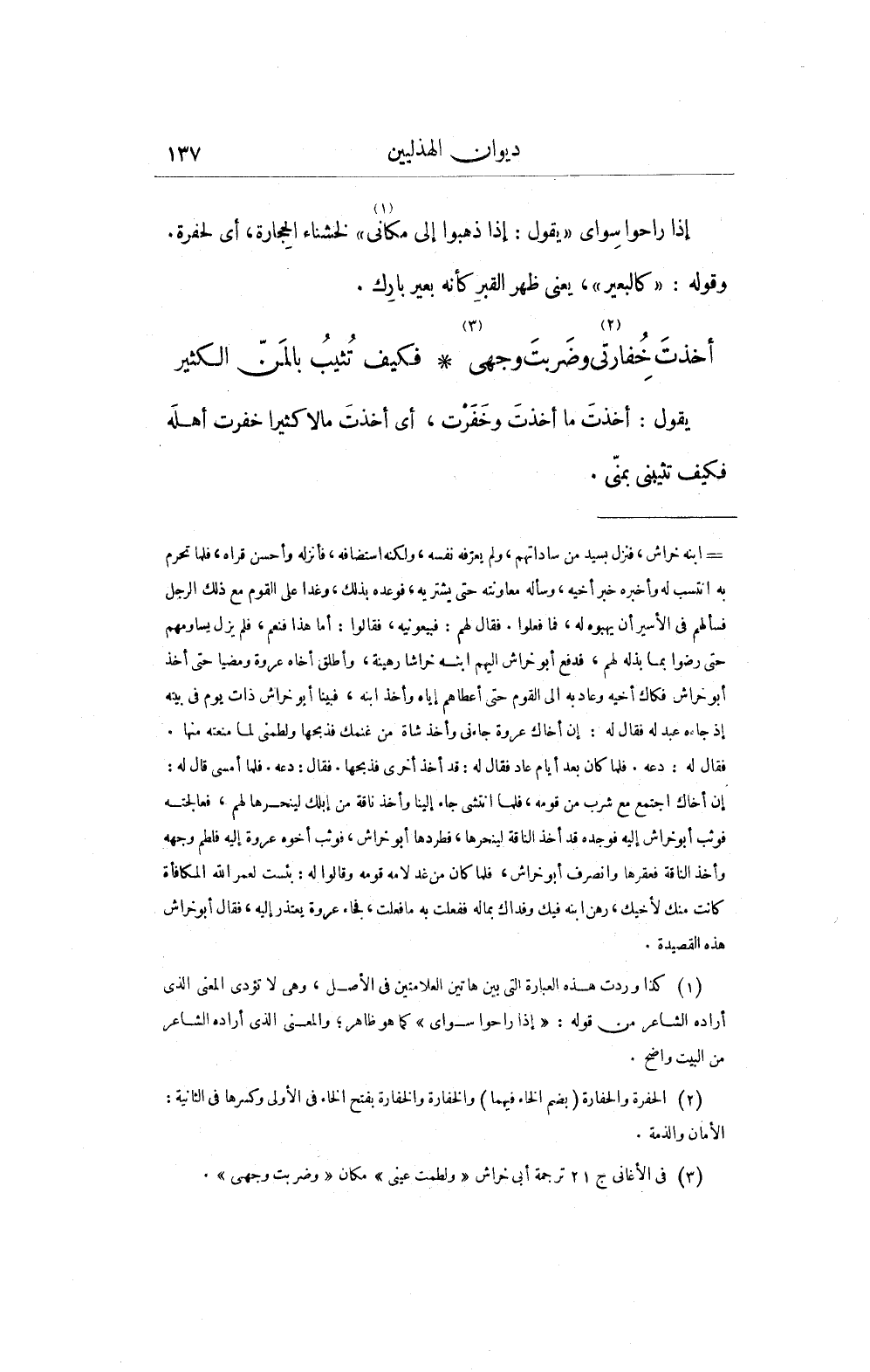 (¬3) فى الأغانى ج 21 ترجمة أبي خراش "ولطمت عينى" مكان "وضربت وجهى".
