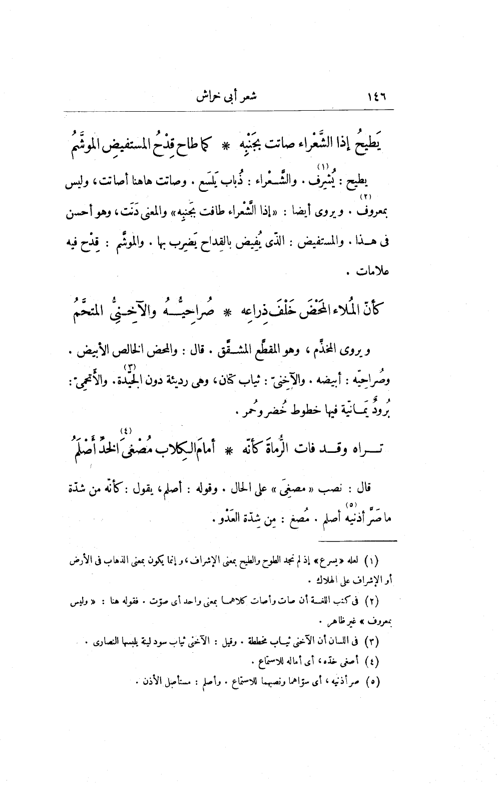 يطيح: يُشرِف (¬1). والشَّعْراء: ذُباب يَلسَع. وصاتت هاهنا أصاتت، وليس بمعروف (¬2). ويروى أيضاً: "إذا الشَّعْراء طافت بجَنبِه" والمعنى دَنَت، وهو أحسن فى هذا. والمستفيض: الّذي يُفِيض بالقِداح يَضرِب بها. والموشَّم: قِدْح فيه علامات.