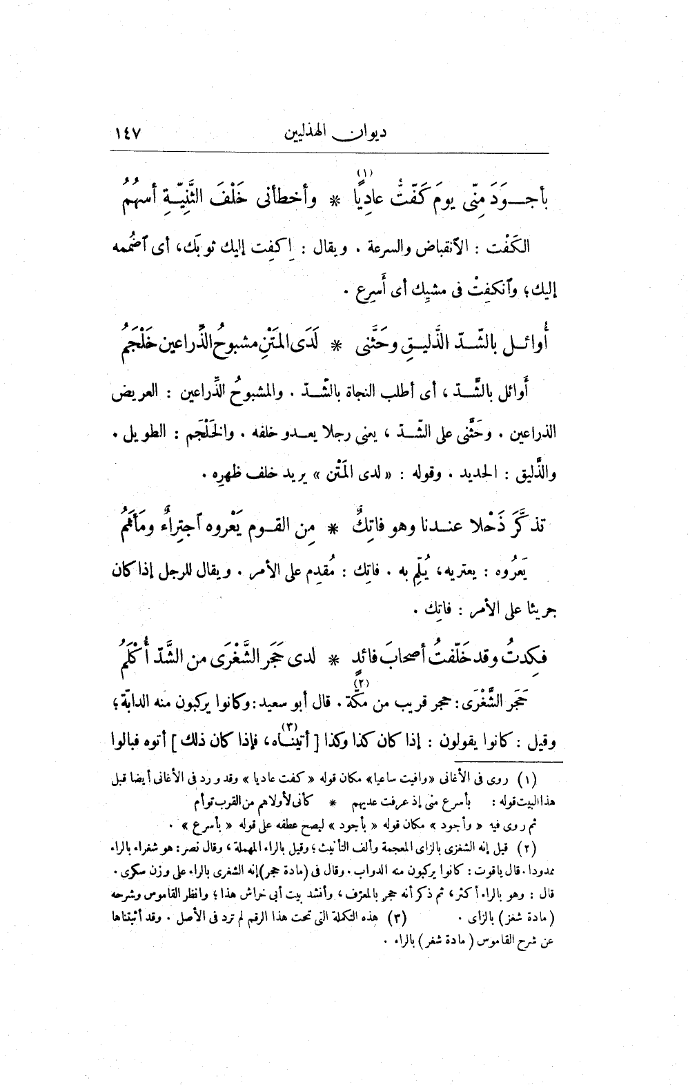 (¬1) روى فى الأغانى "وافيت ساعيا" مكان قوله "كفت عاديا" وقد ورد فى الأغانى أيضاً قبل هذا البيت قوله: