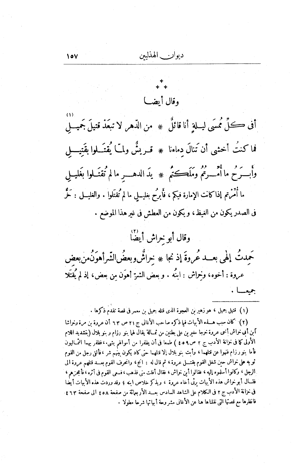 (¬1) قتيل جميل، هو زهير بن العجوة الذي قتله جميل بن معمر فى قصة تقدم ذكرها.