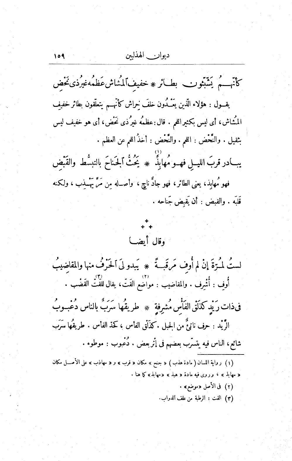 (¬1) رواية اللسان (مادة هذب) "جنح" مكان "قرب" و"مهاذب" على الأصل مكان "مهابذ"، وروى فيه مادة "هبذ" "مهابذ" كما هنا.