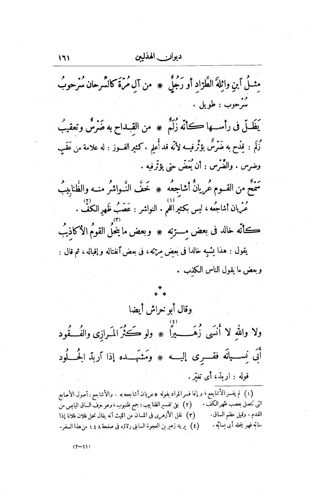 (¬1) لم يفسر الأشاجع، وإنما فسر المراد بقوله "عريان أشاجعه". والأشاجع: أصول الأصابع التى تتصل بعصب ظهر الكف.