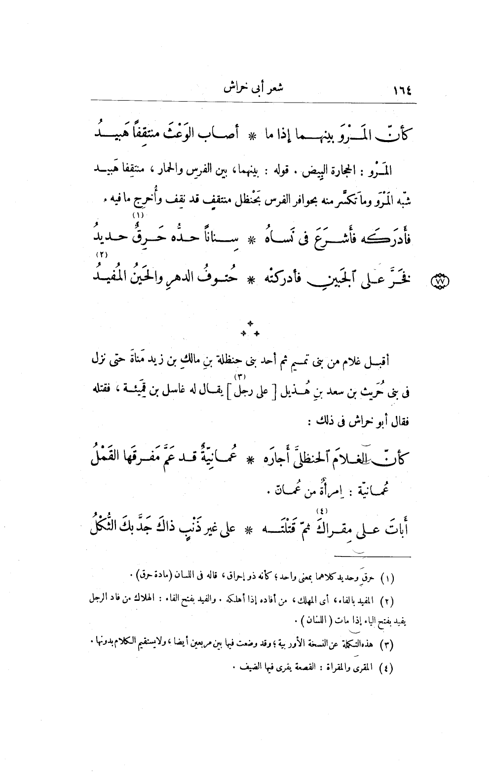 فأَدرَكَه فأَشرَعَ فى نَساهُ ... سِناناً حدُّه حَرِقٌ (¬1) حديدُ