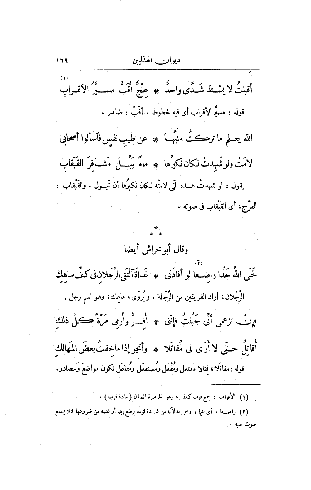 (¬1) الأقراب: جمع قرب كقفل، وهو الخاصرة اللسان (مادة قرب).
