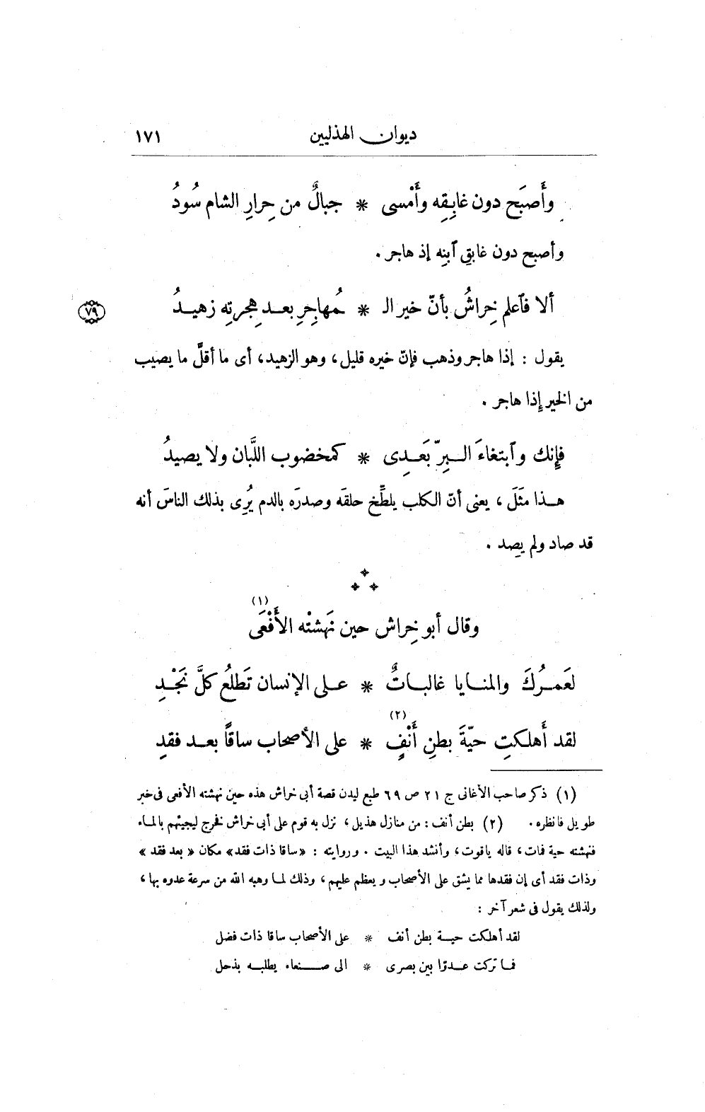 (¬1) ذكر صاحب الأغانى ج 21 ص 69 طبع ليدن قصة أبى خراش هذه حين نهشته الأفعى فى خبر طويل فانظره.