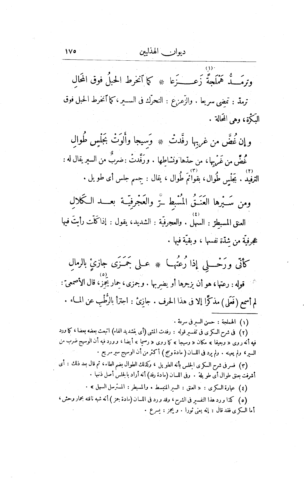 (¬5) كذا ورد هذا التفسير فى الشرح، وقد ورد فى اللسان (مادة جمز) أنه شبه ناقته بحمار وحش، أما السكرى فقد قال: إنه يعني ثورا. ويجمز: يسرع.