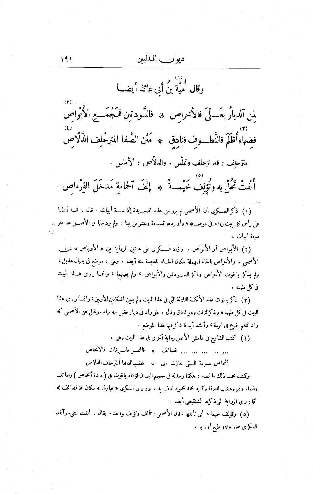 (¬1) ذكر السكري أن الأصمعي لم يرو من هذه القصيدة إلا ستة أبيات. قال: قد أعلمنا على رأس كل بيت رواه في موضعه، وأوردها تسعة وعشرين بيتا: ولم يرد منها في الأصل هنا غير سبعة أبيات.