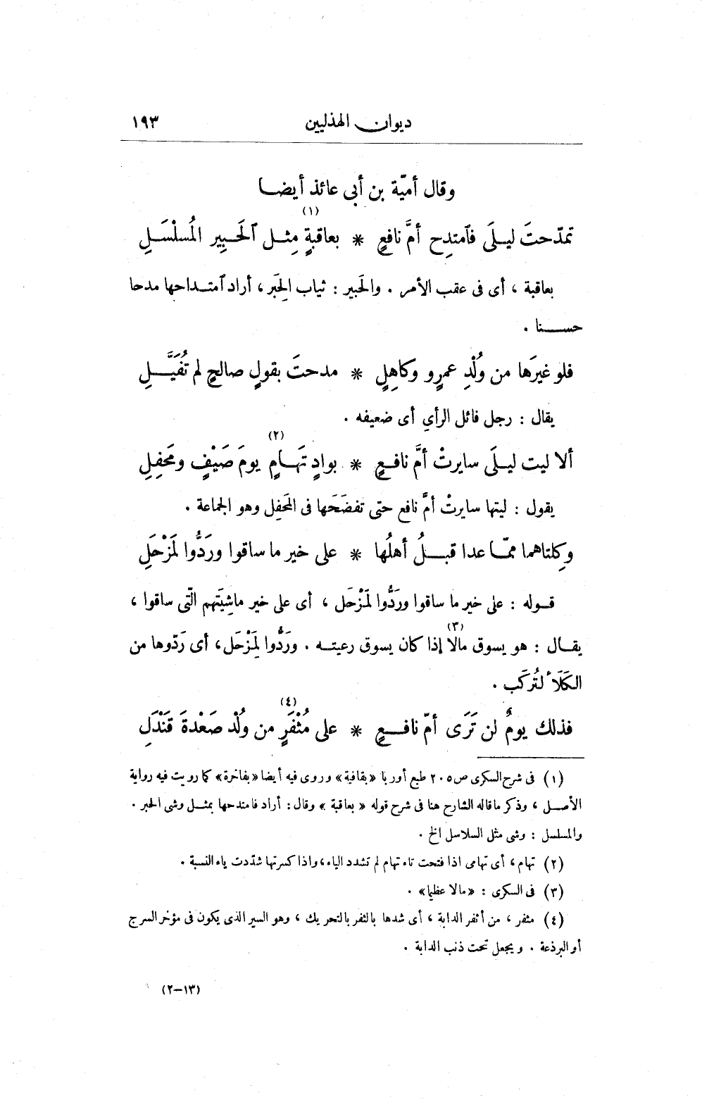 ألا ليت ليلَى سايرتْ أمَّ نافعٍ ... بوادٍ تَهامٍ (¬2) يومَ صَيْفٍ ومَحفِلِ