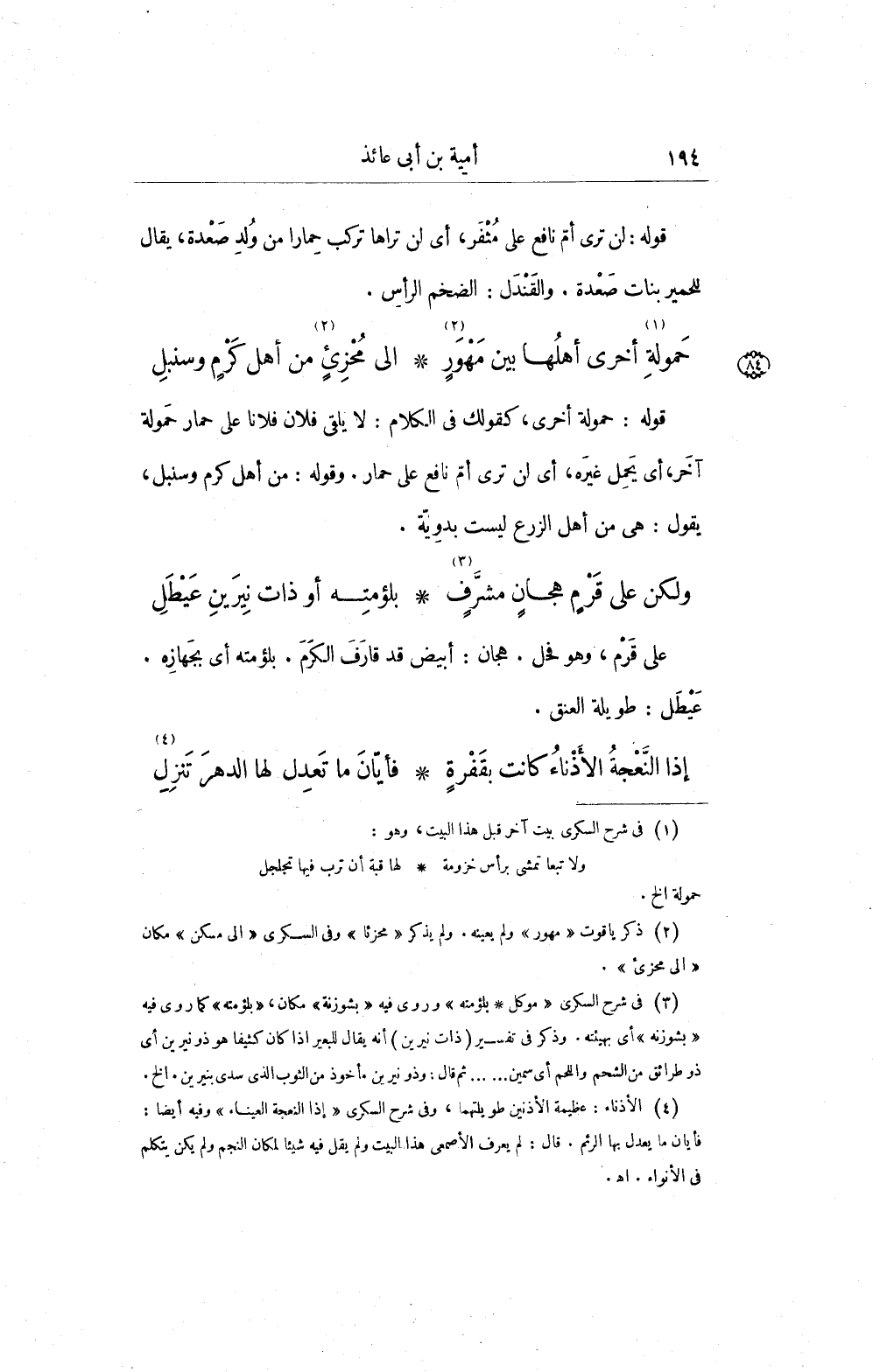 (¬4) الأذناه: عظيمة الأذنين طويلتهما، وفي شرح السكري "إذا النعجة العيناء" وفيه أيضا: فأيان ما يعدل بها الرئم. قال: لم يعرف الأصمعي هذا البيت ولم يقل فيه شيئا لمكان النجم ولم يكن يتكلم في الأنواء .. اهـ.