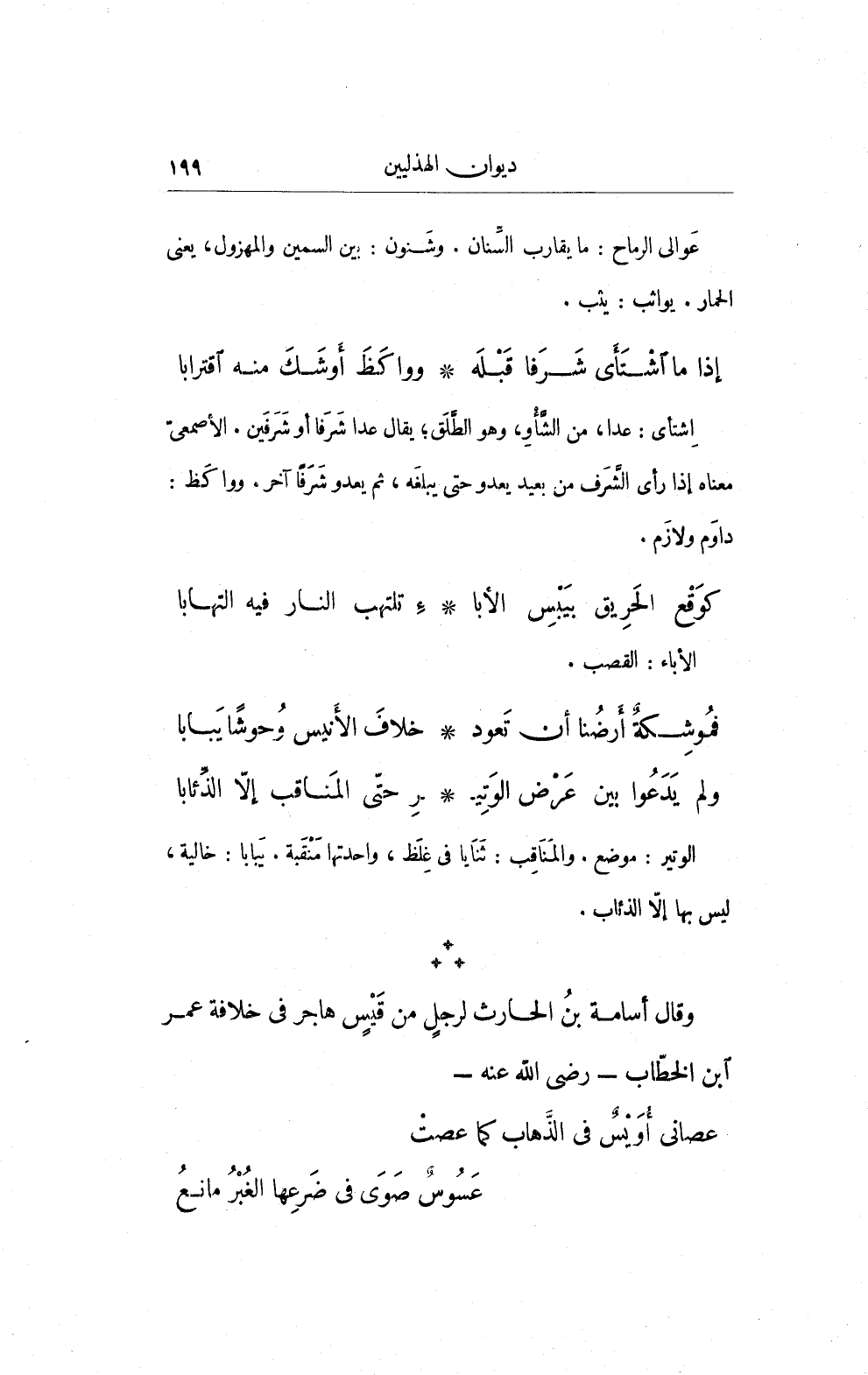 وقال أسامة بنُ الحارث لرجلٍ من قَيْسٍ هاجر في خلافة عمر ابن الخطّاب -رضي الله عنه-: