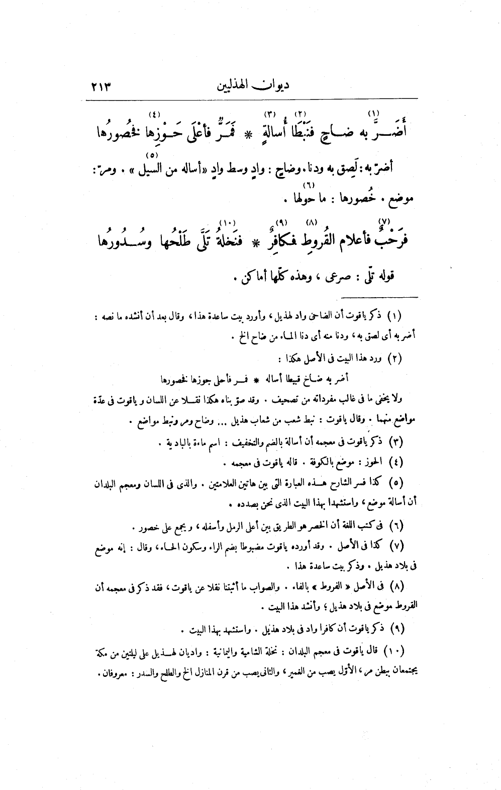 (¬1) ذكر ياقوت أن الضاحي واد لهذيل، وأورد بيت ساعدة هذا، وقال بعد أن أنشده ما نصه: أضر به أي لصق به، ودنا منه أي دنا الماء من ضاح الخ.
