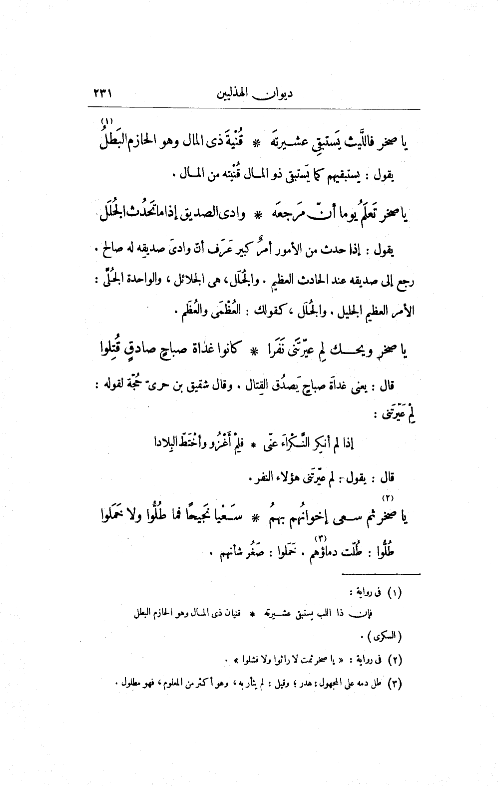 (¬2) في رواية: "يا صخر ثمت لا راثوا ولا فشلوا".