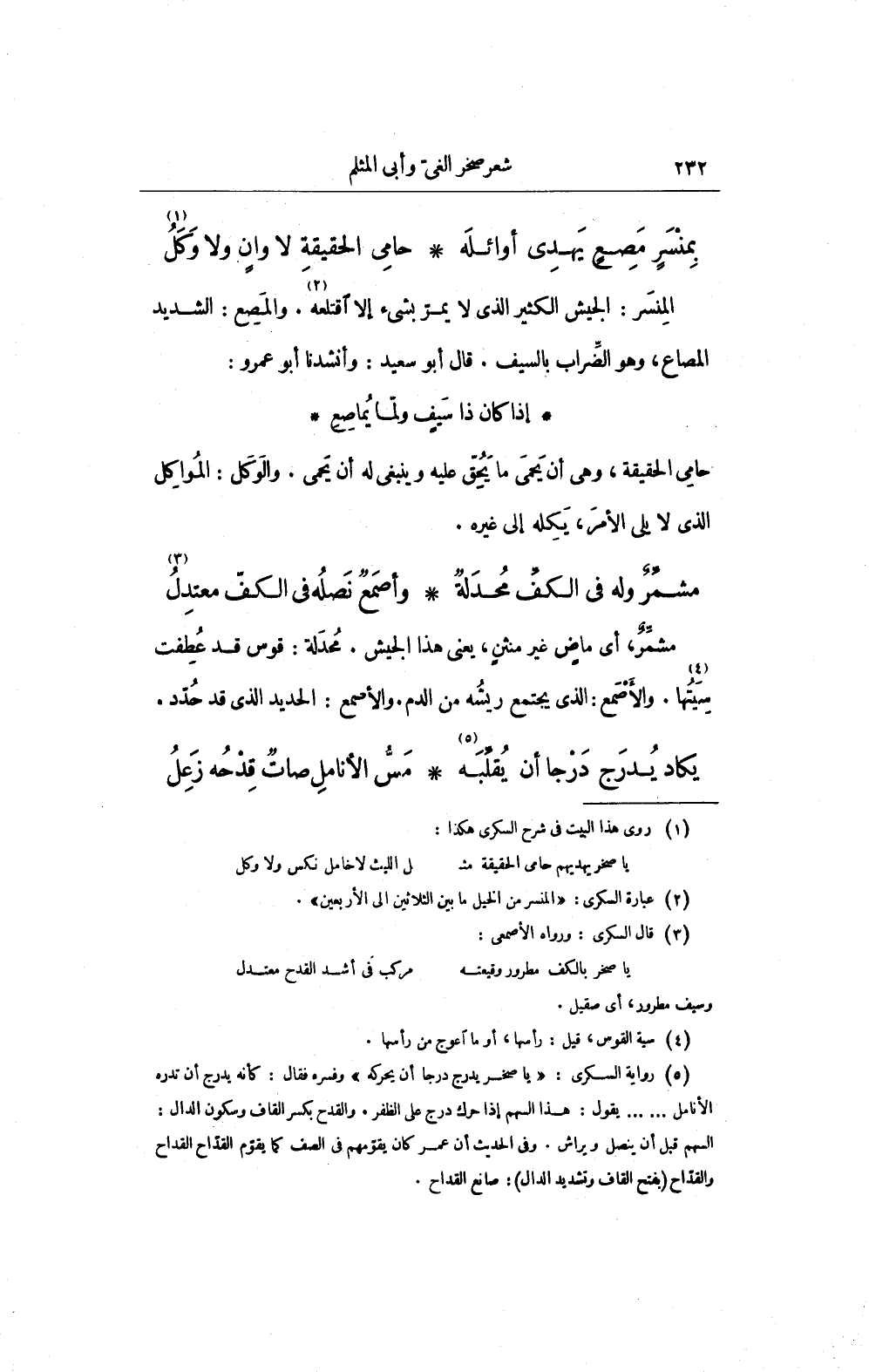 مشمِّرٌ وله في الكفِّ مُحدَلةٌ ... وأصمَعٌ نَصلُه في الكفّ معتدِلُ (¬3)