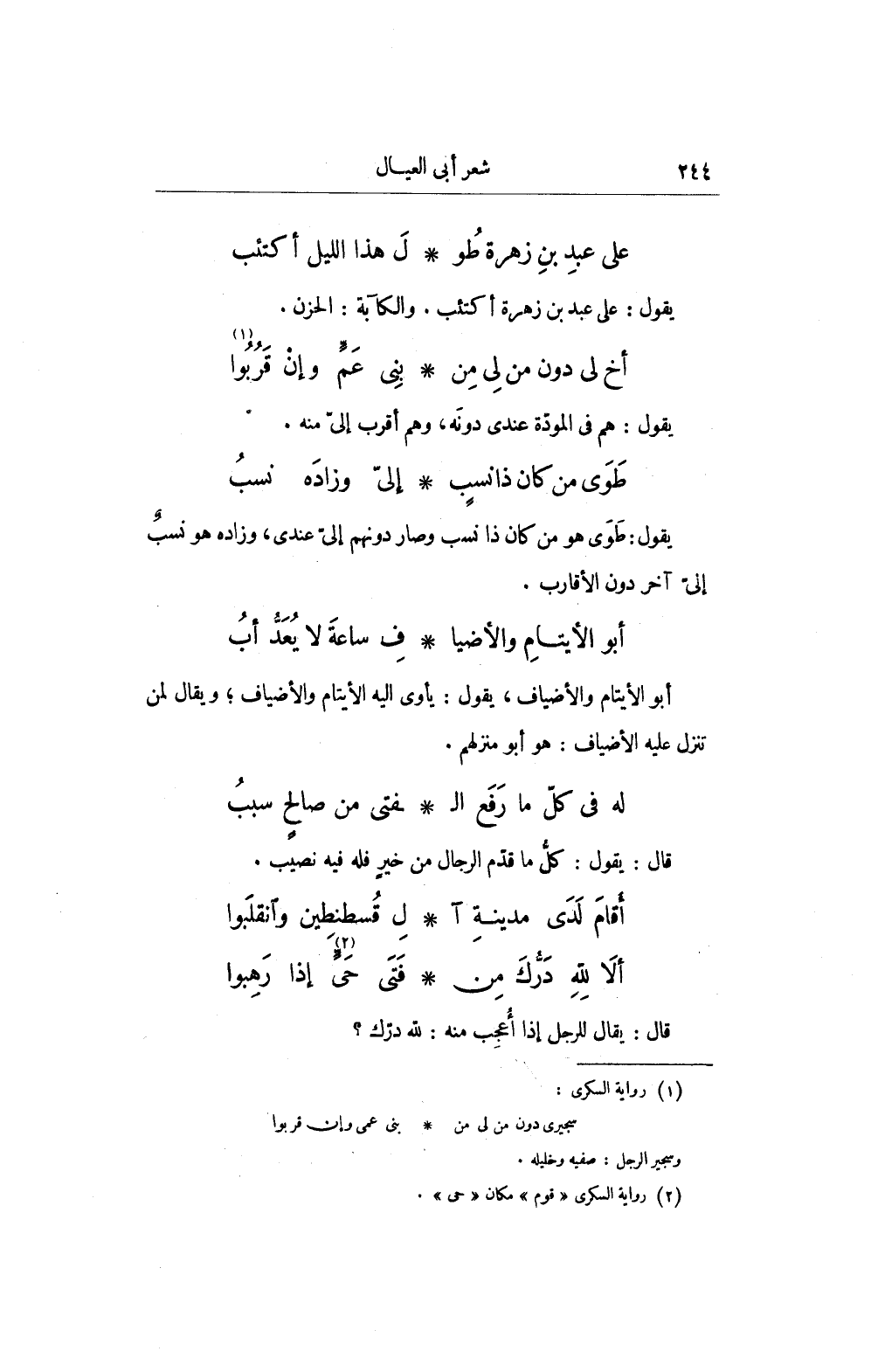 على عبدِ بنِ زهرة طُو ... لَ هذا الليل أكتئب