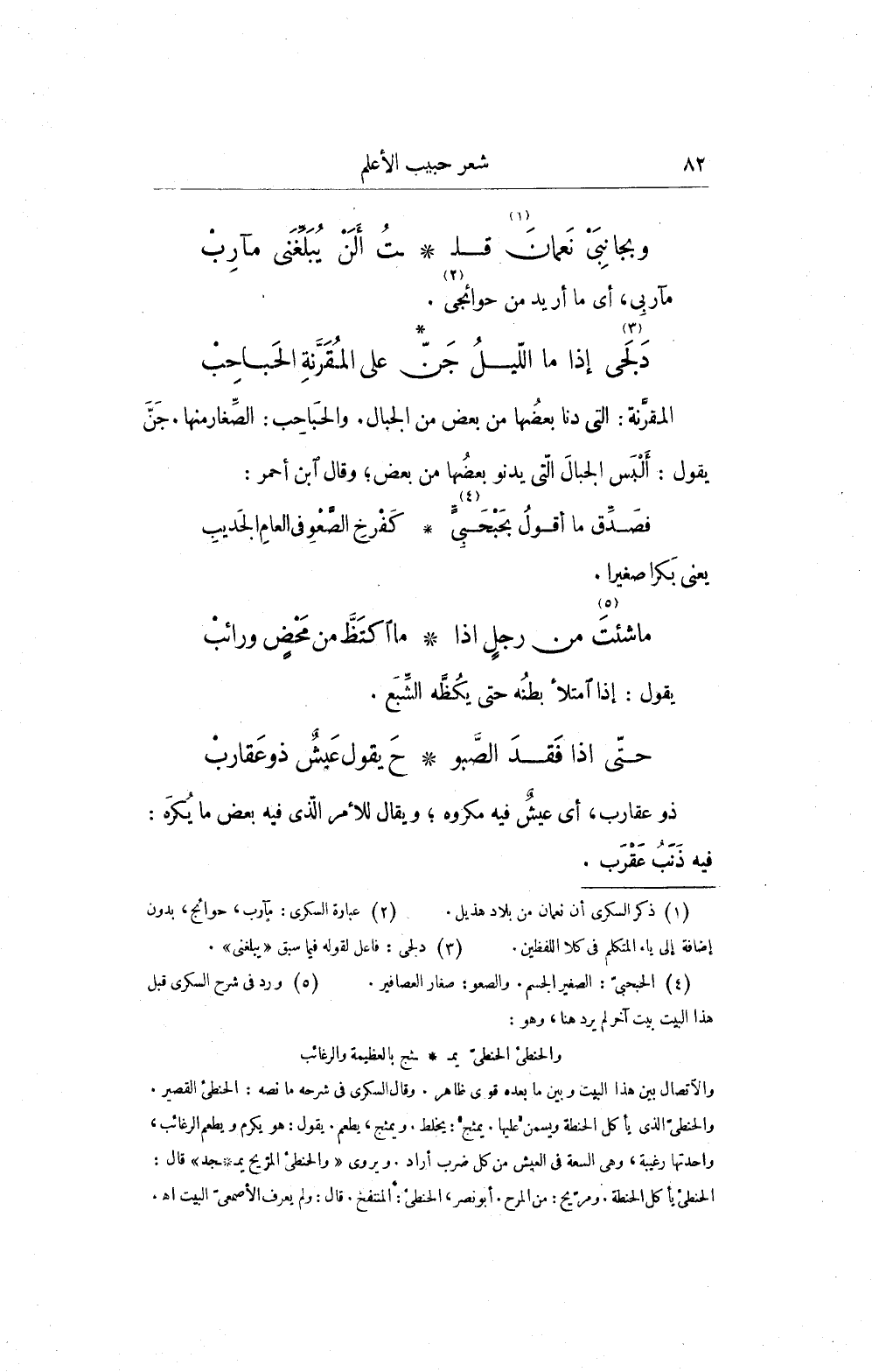(¬5) ورد في شرح السكرى قبل هذا البيت بيت آخر لم يرد هنا، وهو: