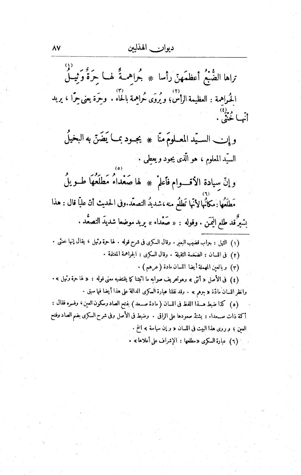 (¬5) كذا ضبط هذا اللفظ في اللسان (مادة صعد) بفتح الصاد وسكون العين، وفسره فقال: أكمة ذات صعداء: يشتدّ صعودها على الراقى. وضبط في الأصل وفي شرح السكرى بضم الصاد وفتح العين؛ وروى هذا البيت في اللسان" وإن سياسة" الخ.