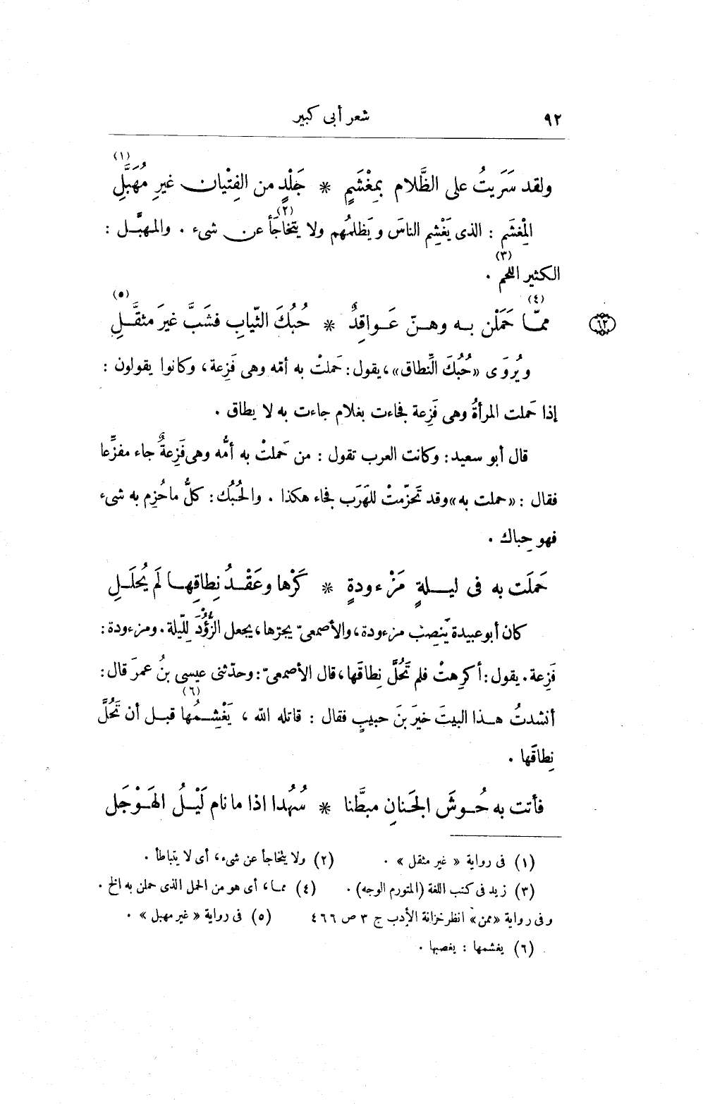 كان أبو عبيدة يَنصِب مزءودة، والأصمعيّ يجرّها، يجعل الزّؤدَ للّيلة. ومزءودة: فَزِعة. يقول: أكرِهتْ فلم تَحُلَّ نِطاقَها، قال الأصمعىّ: وحدّثنى عيسى بنُ عمرَ قال: أنشدتُ هذا البيتَ خيرَ بنَ حبيبٍ فقال: قاتله الله، يَغْشِمُها (¬6) قبل أن تَحُلَّ نِطاقَها.