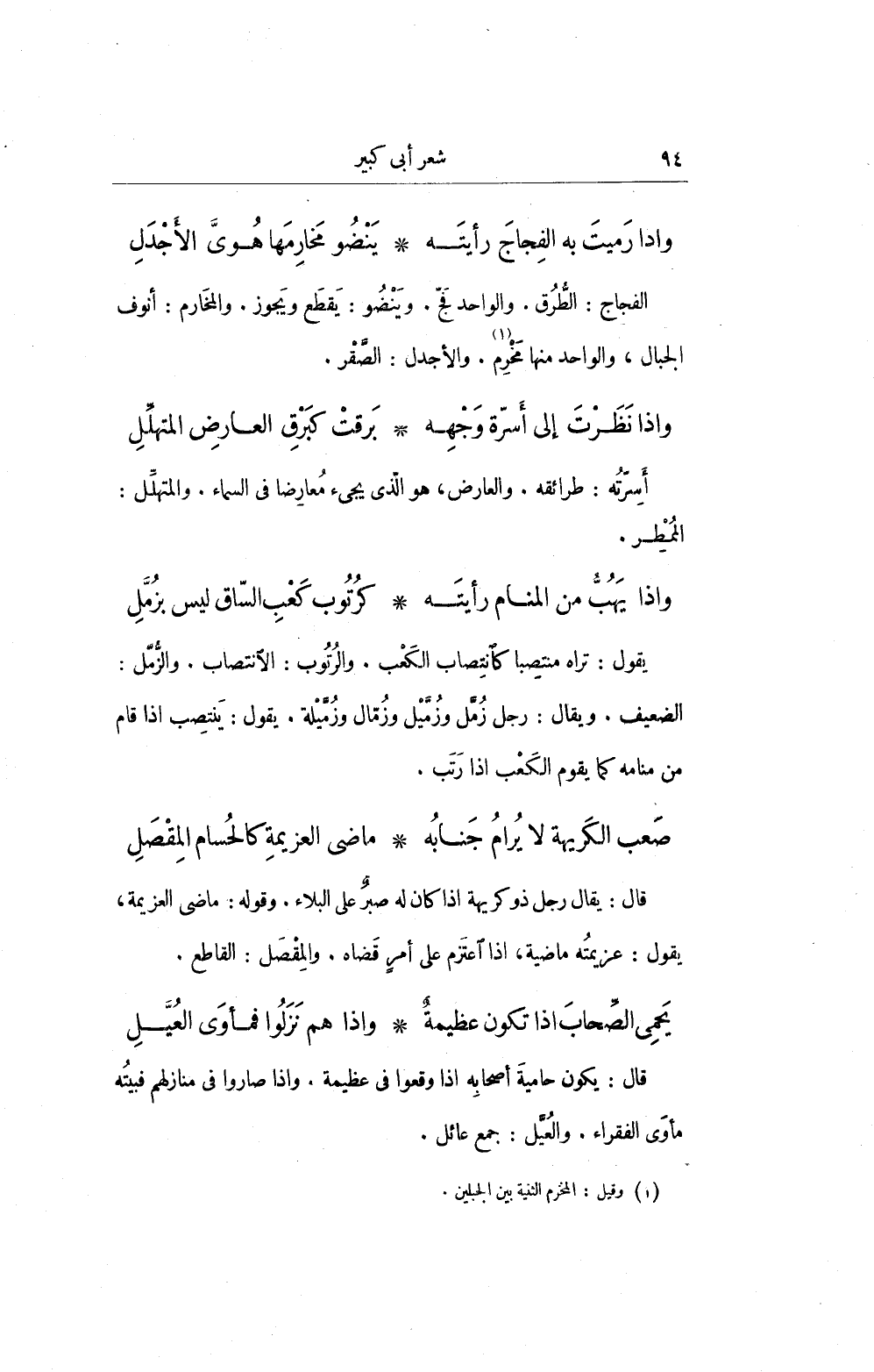 واذا رَميتَ به الفِجاجَ رأيتَه ... يَنْضُو مَخارِمَها هُوىَّ الأَجْدَلِ